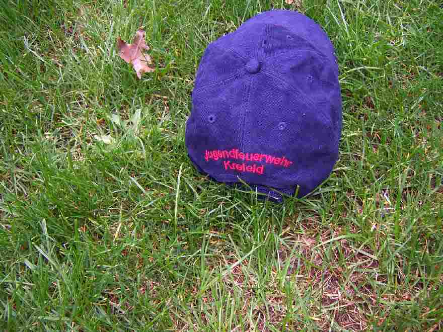 Die dunkelblauen Cap´s sind auf der Stirnseite mit dem Emblem des Deutschen Jugendfeuerwehr Verband verziehrt. Zudem ist auf der Rückseite der größenverstellbaren Cap´s der Schriftzug „Jugendfeuerwehr Krefeld“ eingestickt.